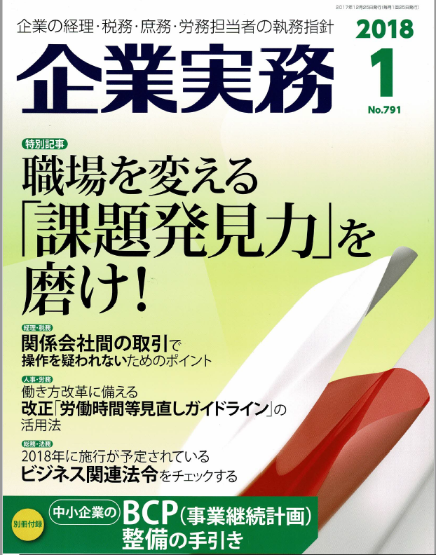 代表社労士の大森絵美が、2018年1月号(2017年12月25日発行)の企業実務に